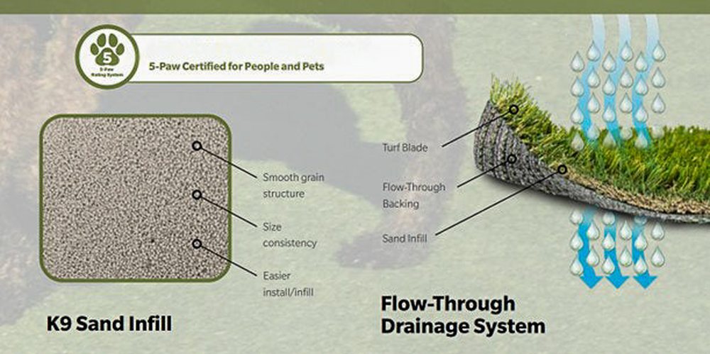 Allows liquids to pass through the turf backing, reducing odor and removing concerns for puddles and clean-up.