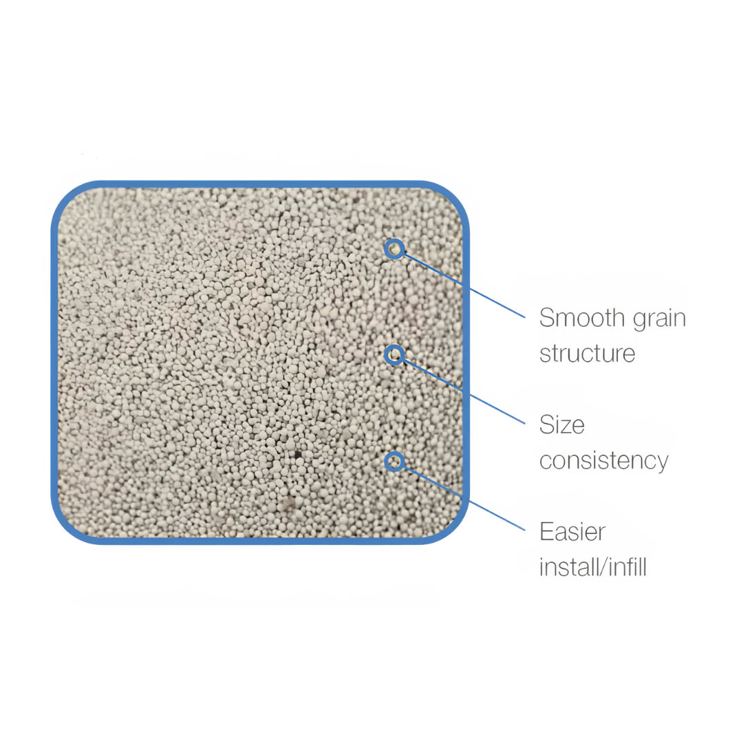 With K9 Sand, you don't have to worry about your pet's paws and feet getting uncomfortably hot. Each particle of K9 Sand contains tiny holes that trap moisture, which is then released as the surface temperature increases, providing cooling. As a result, K9 Sand helps keep the turf's temperature approximately 20°F cooler than standard turf infill, creating a refreshing and comfortable surface for your pets to enjoy.